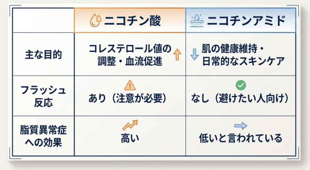 「ニコチン酸」と「ニコチンアミド」──同じナイアシンでも別物